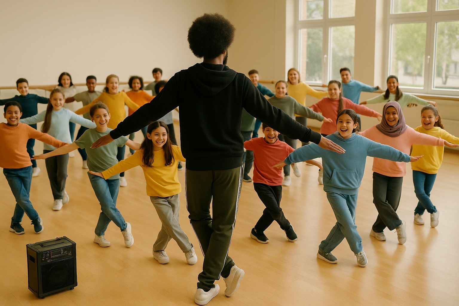 Regelmäßige Tanzpausen auf dem Schulhof bringen Bewegung, Energie und Lebensfreude in den Schulalltag – ein lebendiges Konzept für Konzentration, Gemeinschaft und gute Laune.