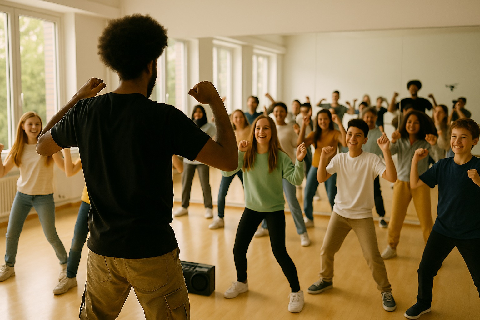Moderner Hip-Hop-Unterricht für Kinder, Jugendliche und Erwachsene – mit Energie, Rhythmus und Spaß an Bewegung. Fördert Koordination, Selbstvertrauen und Gemein- schaftsgefühl.